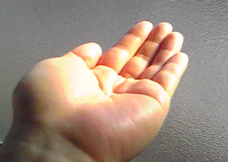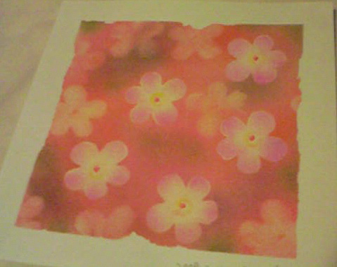 右の絵は、心をしずめて左手をつかって指で直接描いた絵です。